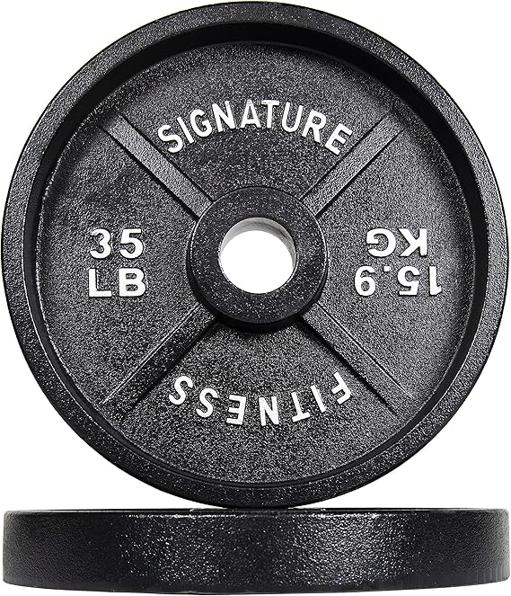 Amazon Com Signature Fitness Deep Dish 2 Inch Olympic Cast Iron Weight Plates With E Coating Sports Outdoors